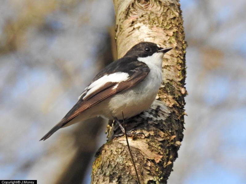Redstart - 1 - male ; Tree Pipit - 2 ; Pied Flycatcher - 1 - male ; Redstart - 2 - males ; Pied Flycatcher - 3 - males
