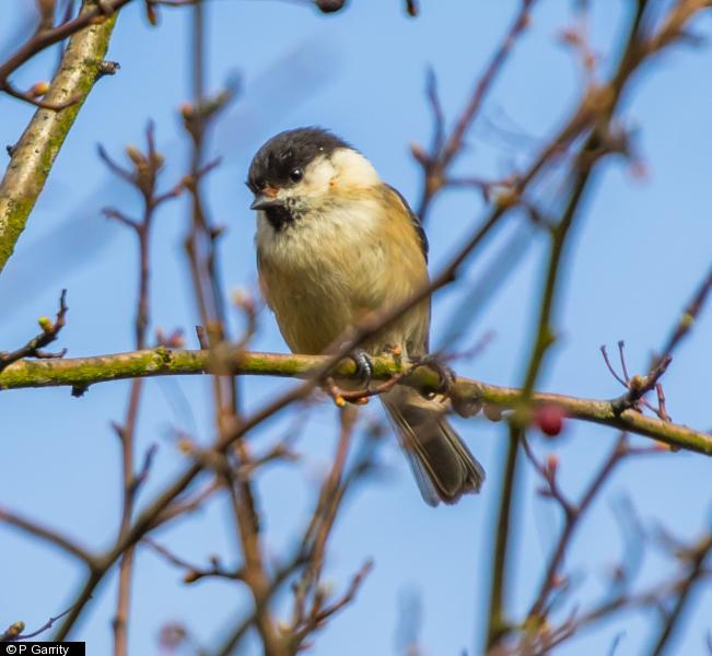 Blackcap - 1 - Male in trees at bottom of garden