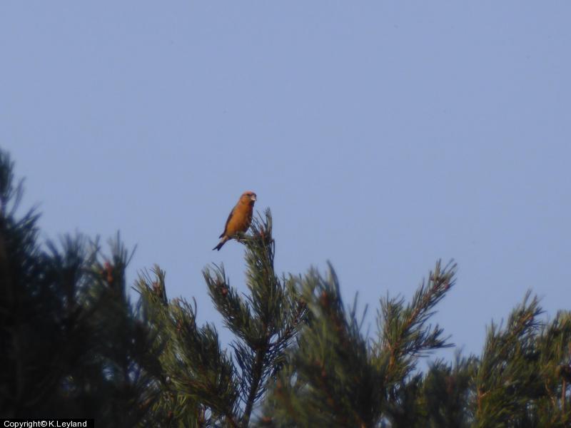 Stonechat - 1 - Singing by road-gate ; Crossbill - 2 - Pair briefly, then flew off west