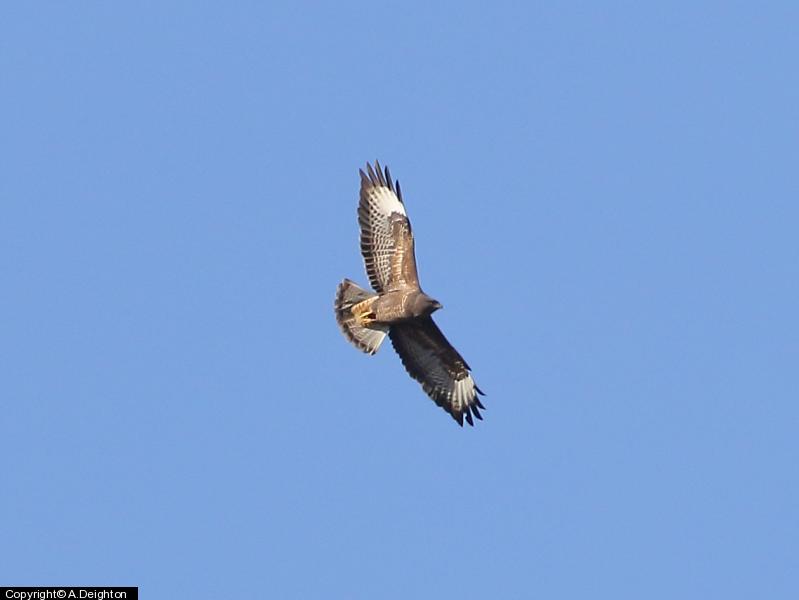 Sparrowhawk - 2 - pair displaying ; Peregrine - 1 - nearly caught white Dove. ; Kestrel - 1 ; Common Buzzard - 7 - 5 over Wincobank Wood, and 2 further east towards M1, photo of dark adult