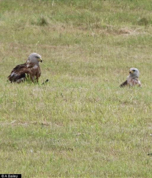 Red Kite - 2+ - together in field near White Lee Moor plantation.