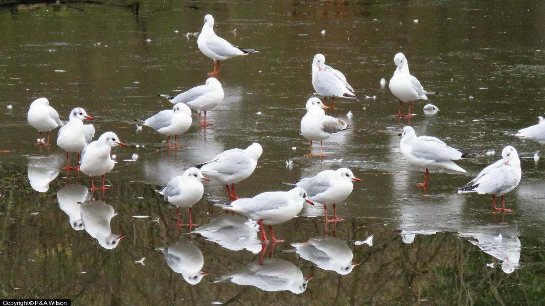Black-headed Gull - 60+ - Sitting on the ice ; Goldcrest - 1 ; Long-tailed Tit - 3