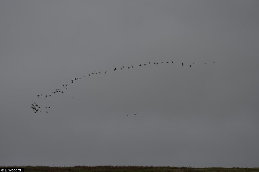 Song Thrush - 1 - full song ; Grey Goose sp - 17 - high to N/NW @ 0912hrs ; Cormorant - 2 - singles W & NE ; Grey Heron - 2 - adult & imm ; Greenfinch - 1 - over ; Moorhen - 5 - inc 2 on river ; Mallard - c50 - inc 10 on river. Water levels very high after heavy rain ; Grey Wagtail - 1 - over ; 320 - c25 - under flooded willows ; Goosander - 2 - Pair on river @13.30 ; Goldcrest - 2