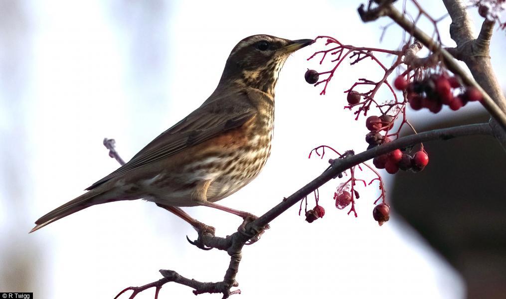 - 31 - feeding on berry with other thrushes, Wilfred Road ; Mistle Thrush - 2 - Wilfred Rd ; Blackbird - 7