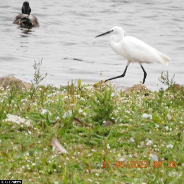 - 1 - Adult on main lake early morning. ; Redshank - 1 - Full grown juv around small lake with adult close by.