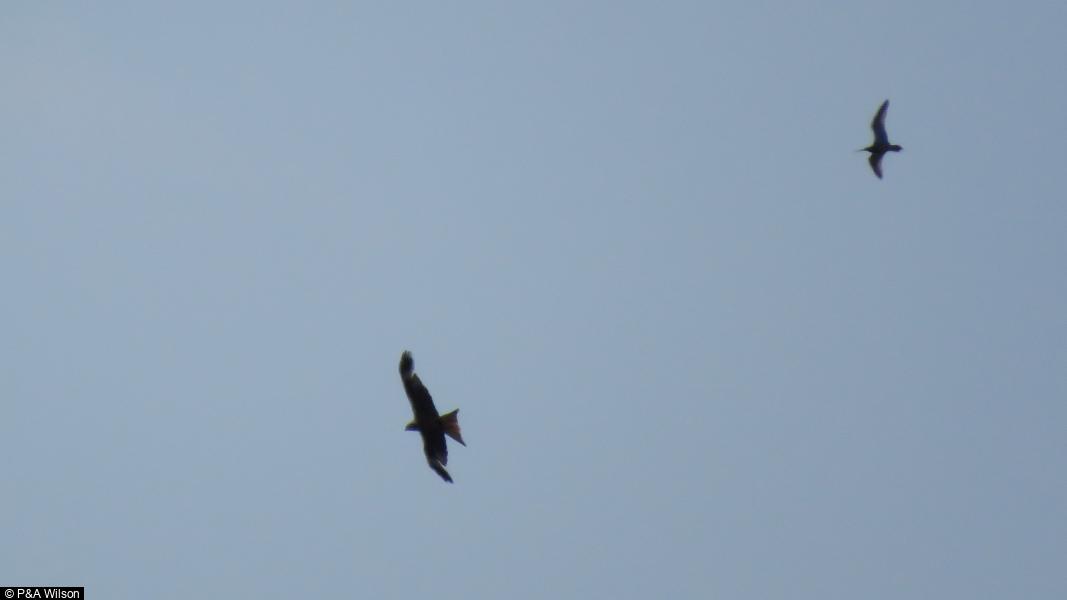 Swallow - 10 ; Curlew - 3 - 1 mobbing Red Kite ; Red Kite - 1 ; Kestrel - 2 - 1 mobbed by Swallows, then mobbed by Lapwings ; Golden Plover - 3 - 1 in horse field, 2 together towards the west end of the conduit, calling to each other ; Lapwing - 9 ; Meadow Pipit - 8 ; Red Grouse - 1 ; Pied Wagtail - 1 ; Oystercatcher - 2