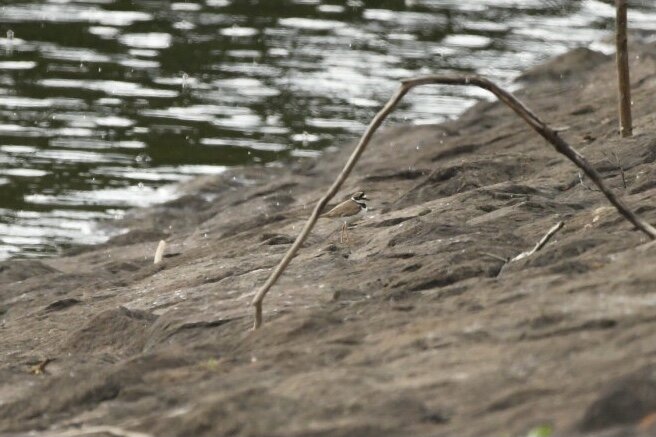 Little Ringed Plover - 3 - Seen at northern neck during showers at 19.00, flushed by dog walker. ; Common Sandpiper - 2+ - Adult plus at least one juv. ; Grey Heron - 1