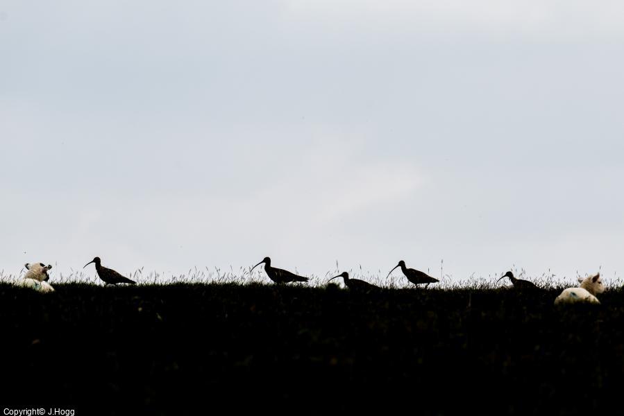 Hobby - 1 ; Curlew - 14 ; Curlew - 14 ; Meadow Pipit - 2 ; Mistle Thrush - 4 ; Whitethroat - 2 - Pair ; Blackcap - 5