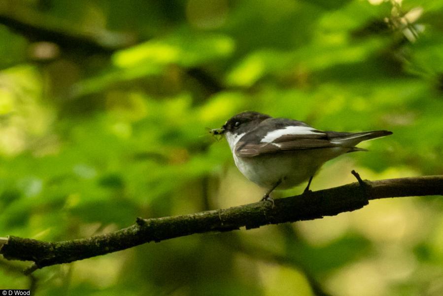 Cuckoo - 1 - flying north-west over open part of wood ; Redstart - 1 - singing in top of oak tree.