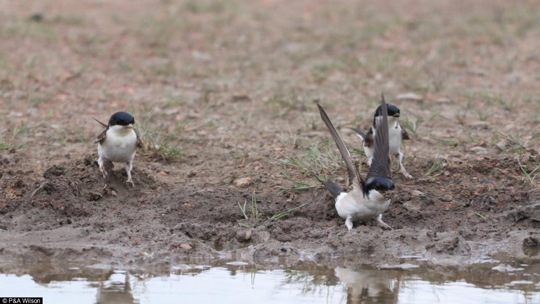 Willow Warbler - 2 - Singing ; Swift - 3 ; Whitethroat - 2 - Singing ; Great Crested Grebe - 18 - 2 Juveniles ; Black-headed Gull - 20 ; Gadwall - 7 ; Reed Bunting - 5 ; Greylag Goose - 10 ; Skylark - 8 - Singing ; Lapwing - 4 ; Pied Wagtail - 5 - With food ; Pochard - 1 ; Tufted Duck - 12 ; Oystercatcher - 2 ; Kestrel - 3 - Together ; House Martin - 20 - Gathering mud ; Sand Martin - 5 ; Linnet - 1 ; Chiffchaff - 2 - Singing ; Blackcap - 1 - Singing ; Wheatear - 1 - Female on North shore ;