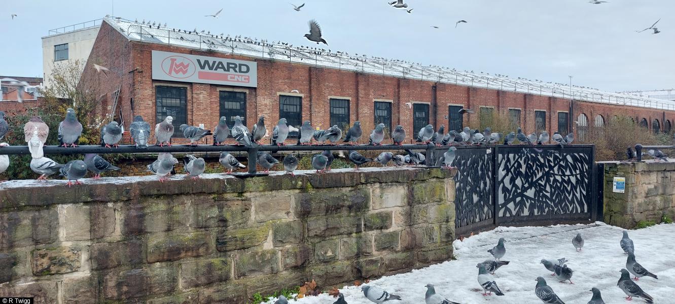 - 1 - 1 - 1st winter ; Mallard - 81 ; Goosander - 6 ; Feral Pigeon - c200 - With lots of gulls taking advantage of the food handouts in the snow.