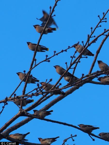 - 60+ - Flock on a tall tree at the top of Pit Lane at 14:00, frequently flying down to the tree outside the old fire station but not settling to eat