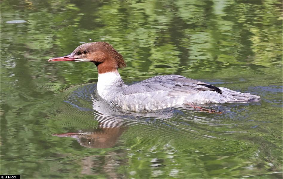 Kingfisher - 1 - River, flew upstream @05.25 ; Grey Wagtail - 1 ; Chaffinch - 1 - Singing ; Whitethroat - 5 - 4 singing ; Blackcap - 2 - Singing ; Chiffchaff - 2 - Singing ; Willow Warbler - 2 - Singing ; Song Thrush - 1 - Singing ; Blackbird - 02-Mar - Singing ; Mallard - 14 - River/pond, 3 adults with 11 ducklings at various stages of growth. ; Moorhen - 2 - 1 calling from pond. ; Wren - 10+ - Singing