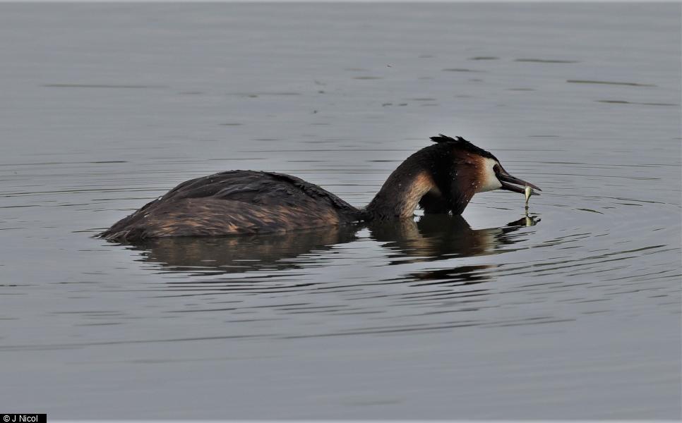 Moorhen - 6 - 2 adults + 4 (visible) chicks ; Kingfisher - 1 - Half a dozen successful dives for food ; Grey Wagtail - 1 - Regular song post at east of dam