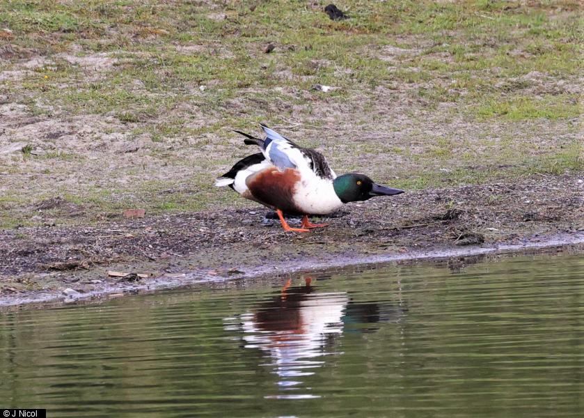 Mandarin - 1 - one male unusual here ; Linnet - 2 - Pair on gorse bank ; Song Thrush - 1