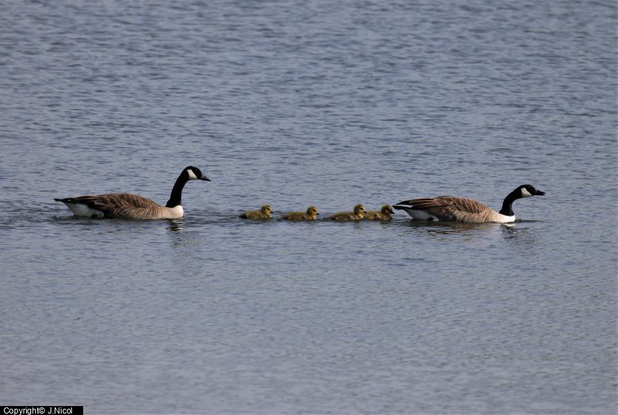 Little Egret - 1 ; Little Egret - 1 - second picture ; Wheatear - 4 ; Wheatear - 4 - second picture ; Gadwall - 2 - 1 pair on river below weir. ; Canada Goose - 6 - Pair with goslings on main lake ; Sedge Warbler - 3