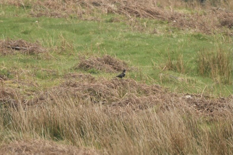 Curlew - 1 ; Pheasant - 2 - males ; Lapwing - 3+ - 2 mobbing Pheasant plus one female with at least two chicks ; Meadow Pipit - c12 ; Greylag Goose - c14 - 4 joined by another 10 that flew in ; Swallow - 2 - flying low ; Mistle Thrush - 1 ; Grey Heron - 1 - by scrape for at least 1 hour ; Snipe - 2 - one chipping from wall the other briefly drumming overhead