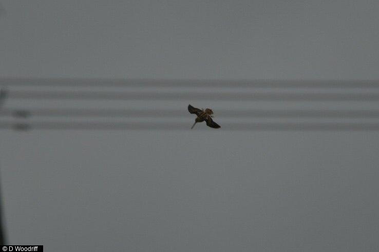 Red Kite - 1 - Red Kite and Buzzard circling quite high then interacting ; House Sparrow - 3 - one gathering nest material ; Jay - 1