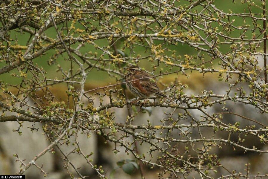 Blackcap - 1 - First day of full song - singing in the trees at the bottom of the garden. ; Wren - 1 - Foraging in a plant pot very close to the house. ; Song Thrush - 1 - Looking for insects in leaf litter at the bottom of the garden.