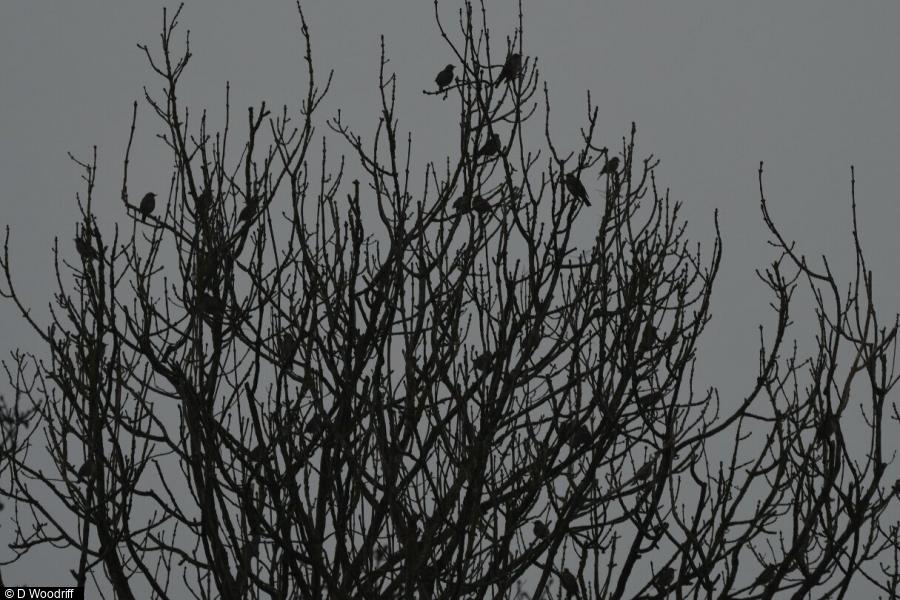 Curlew - 91 ; Dunlin - 3 ; Oystercatcher - 2 ; Shelduck - 1 ; Common Gull - 11 ; Fieldfare - 160 - dropped in to roost