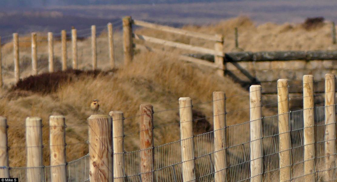 Wheatear - 1 - On a post on the conduit this morning. ; Wheatear - 1 - male on fields