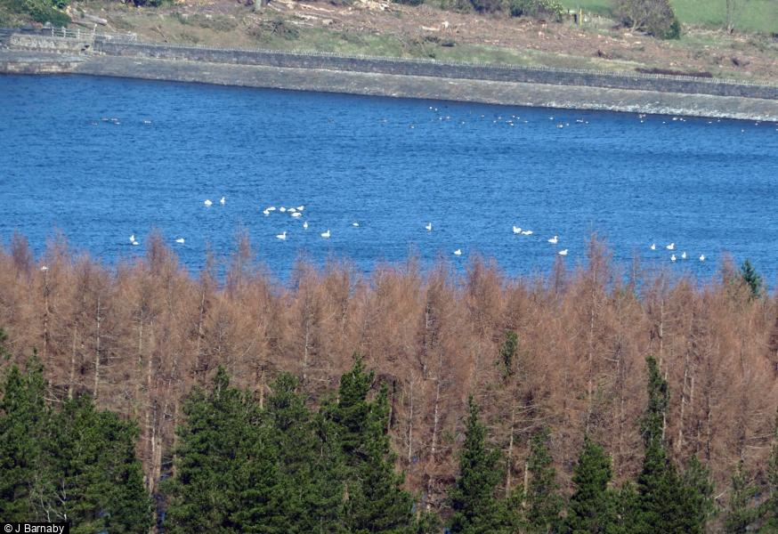 - 27 ; Common Sandpiper - 1 ; Greylag Goose - 421 ; Little Grebe - 8 ; Canada Goose - 222 ; Kestrel - 4 - Family group ; Greenfinch - 2 ; Bullfinch - 1 - male ; Wheatear - 1 - Along dam wall. ; Mallard - 54 ; Tufted Duck - 9 ; Lesser Black-backed Gull - 7 - Adult seen regurgitating food for two begging juvs ; Meadow Pipit - 2 ; Tree Pipit - 1 - South ; Siskin - 1+ ; Little Ringed Plover - 1 ; Swallow - 2 - Numbers have fallen considerably