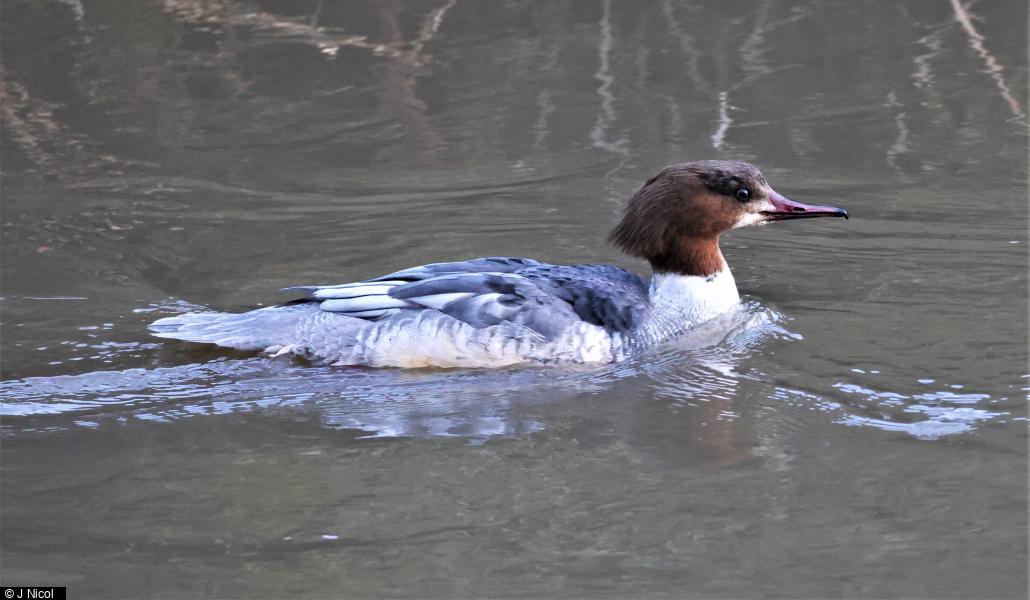 Moorhen - 1 ; Mallard - 4 - 2 pair. ; Greylag Goose - 2 - Pair arrived noisily early morning. ; Cormorant - 1 ; 319 - 1 ; Great Spotted Woodpecker - 1 ; Jay - 1 - Calling in willows. ;