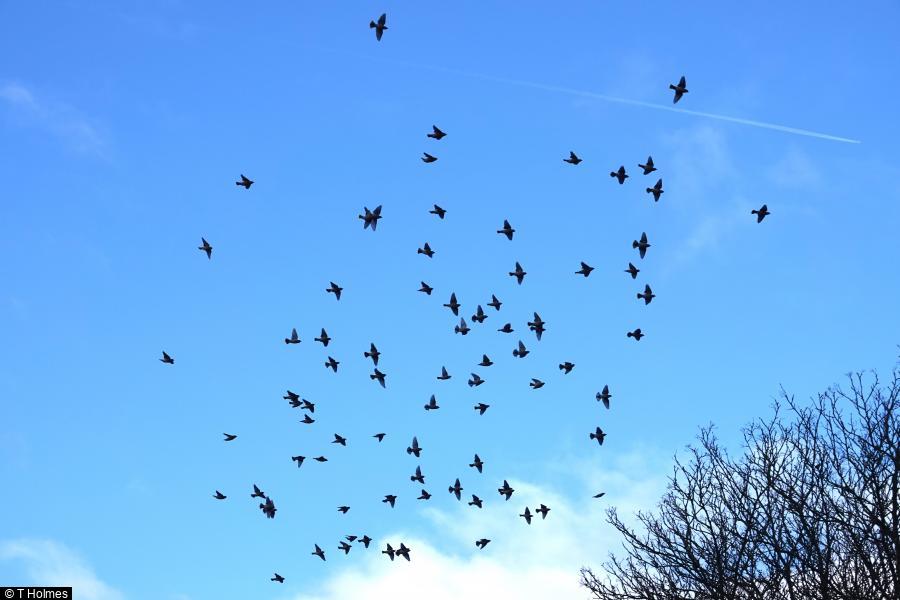 - c 30 - Loose flock over to East ? disturbed by very low flying light aircraft at 14:50