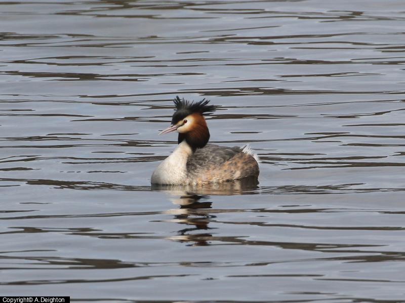 Grey Heron - 2 - feeding from shore ; Cormorant - 1 - perched on low branch over water ; Robin - 5+ - singing males ; Mallard - 20+ ; Moorhen - 1 ; Chaffinch - 5+ - singing males ; Long-tailed Tit - 2 ; Great Tit - 4+ ; Coal Tit - 1 ; Blue Tit - 2 ; Goldcrest - 5+ - high in conifer tree tops ; Lesser Redpoll - 25+ - difficult to count high up feeding on larch cones ; Wren - 2 - singing males ; 319 - 1 - perched in neighbouring field ; Blackbird - 3+ ; Woodpigeon - 1 - singing male