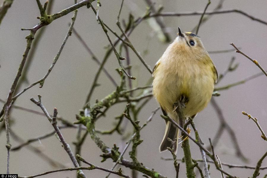 Chiffchaff - 1 - a couple of snatches of song this morning, the first this Spring. ; Siskin - 10+ - the usual small flock, feeding on sunflower hearts an squabbling amongst themselves. ; Goldcrest - 2 - feeding on the ground, picking up the scraps dropped by the Siskins
