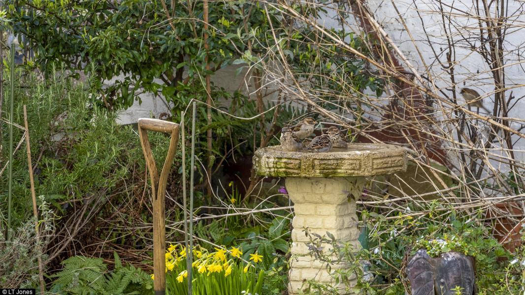 Mallard - 6 - Three pair around park ; Moorhen - 5 ; Pied Wagtail - 1 ; Mistle Thrush - 2 ; Blackbird - 14 - mostly males ; Song Thrush - 6 ; Collared Dove - 2 ; Carrion Crow - 10+ ; Goldfinch - 20+ ; Greenfinch - 4 ; Bullfinch - 2