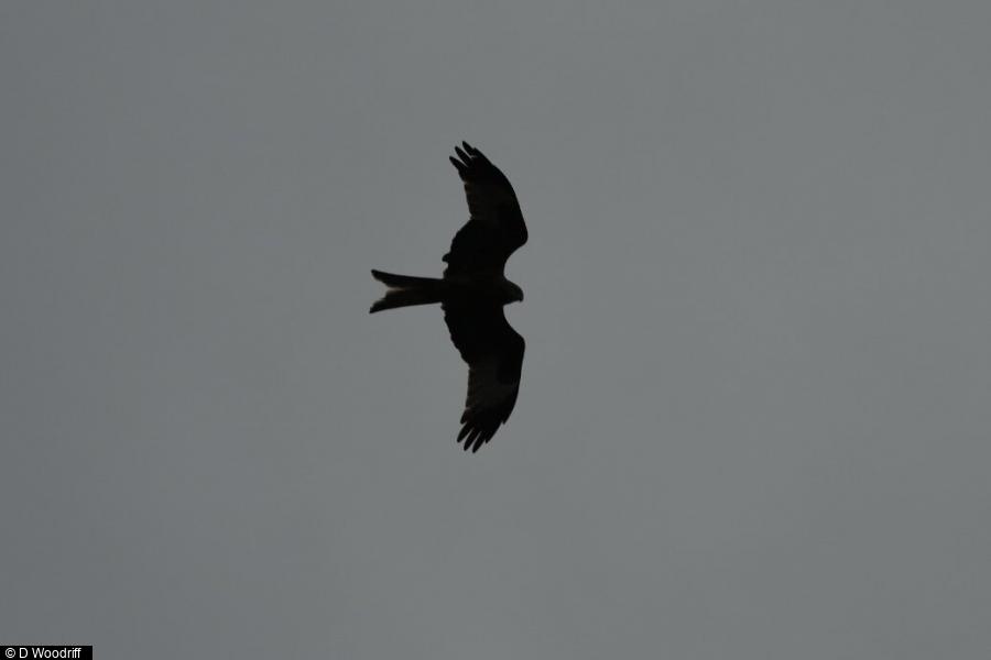 Red Kite - 1 - In kennels/res area 08:30-08:40. Settled briefly in trees before drifting towards southern end of Chase. ; Red Kite - 1 - Another pic