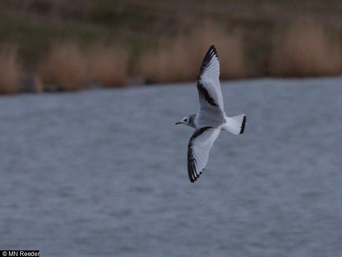 Reed Bunting - 3 - males - one in song ; Mistle Thrush - 1 - singing ; Starling - 80 - c. in fields ; Herring Gull - 8 - on Middle Res ; Black-headed Gull - 35 - c. Flew W
