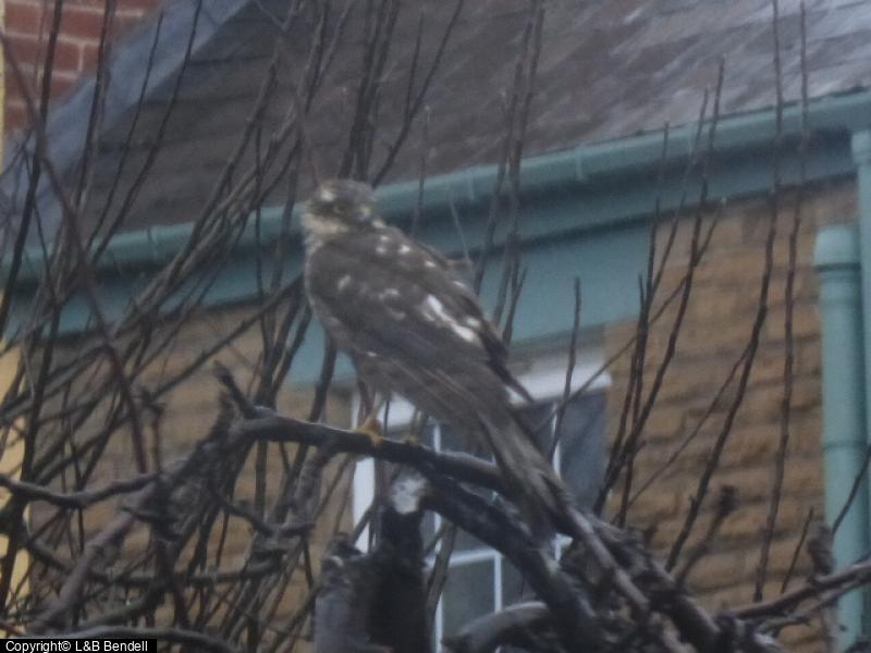 Mandarin - 11 - Flying north near cricket ground ; Stock Dove - 3 ; Peregrine - 1 - Male mobbing Buzzard over House