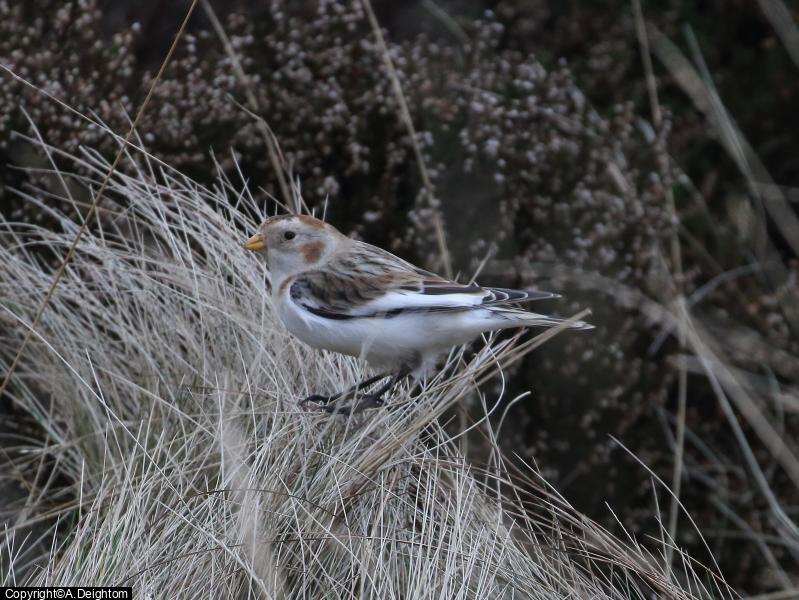 - 1 - Male still feeding on sedge seeds either on track just E of the tunnel chimney or on the moor north of the track SK279794. ;