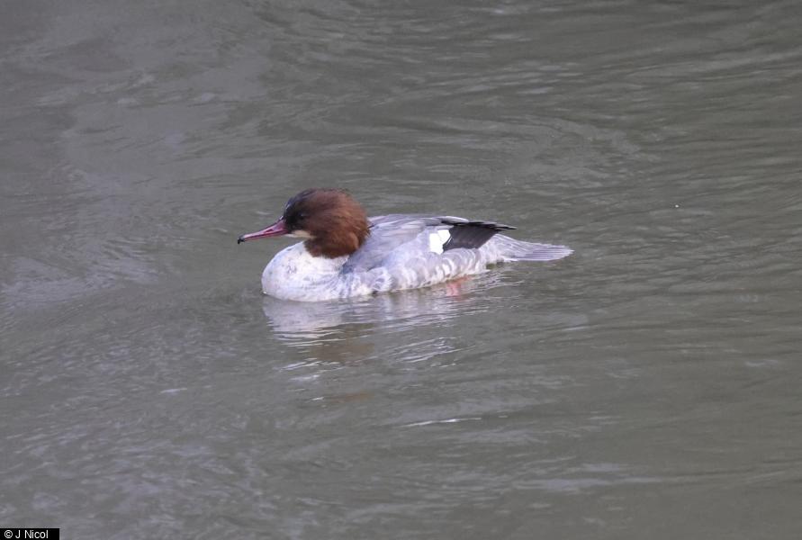 Goosander - 1 - female hanging out with the mallards on Ibbotson Wheel