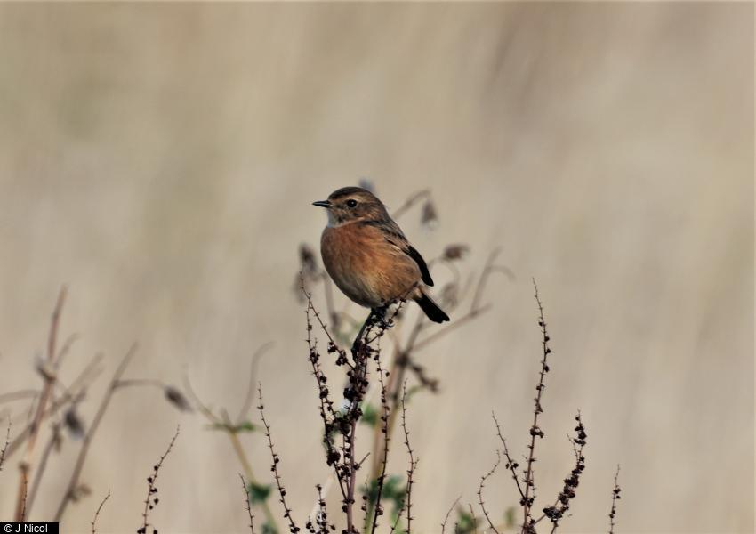 Stonechat - 1 - Single bird just off footpath south of tip.
