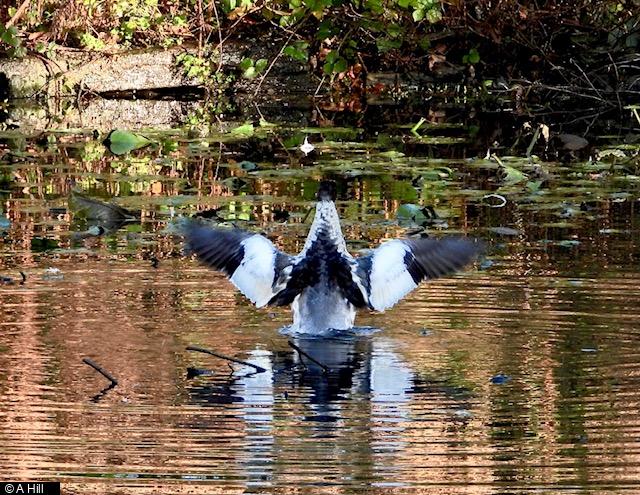 Cormorant - 1 - On Boating Lake ; Goosander - 1 - Male on Boating Lake,