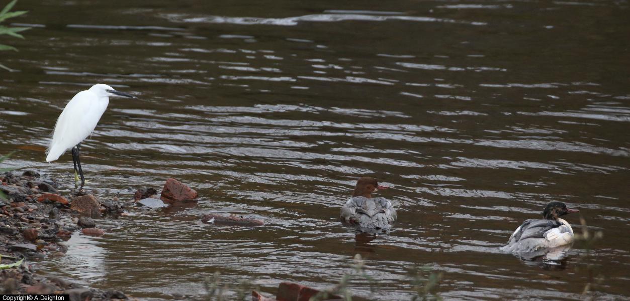 Mute Swan - 24 ; Tufted Duck - 18 ; Goldeneye - 1 - Redhead unsettled by gas gun ; Great Crested Grebe - 6 ; Little Grebe - 1 ; Pied Wagtail - 5 ; Grey Wagtail - 1 ; Siskin - 6+ ; Lesser Redpoll - 4+ ; Bullfinch - 1 ; Chaffinch - 10+ ; Black-headed Gull - 80+ ; Herring Gull - 6 ; Lesser Black-backed Gull - 4 ; Great Black-backed Gull - 3 ; Grey Heron - 1
