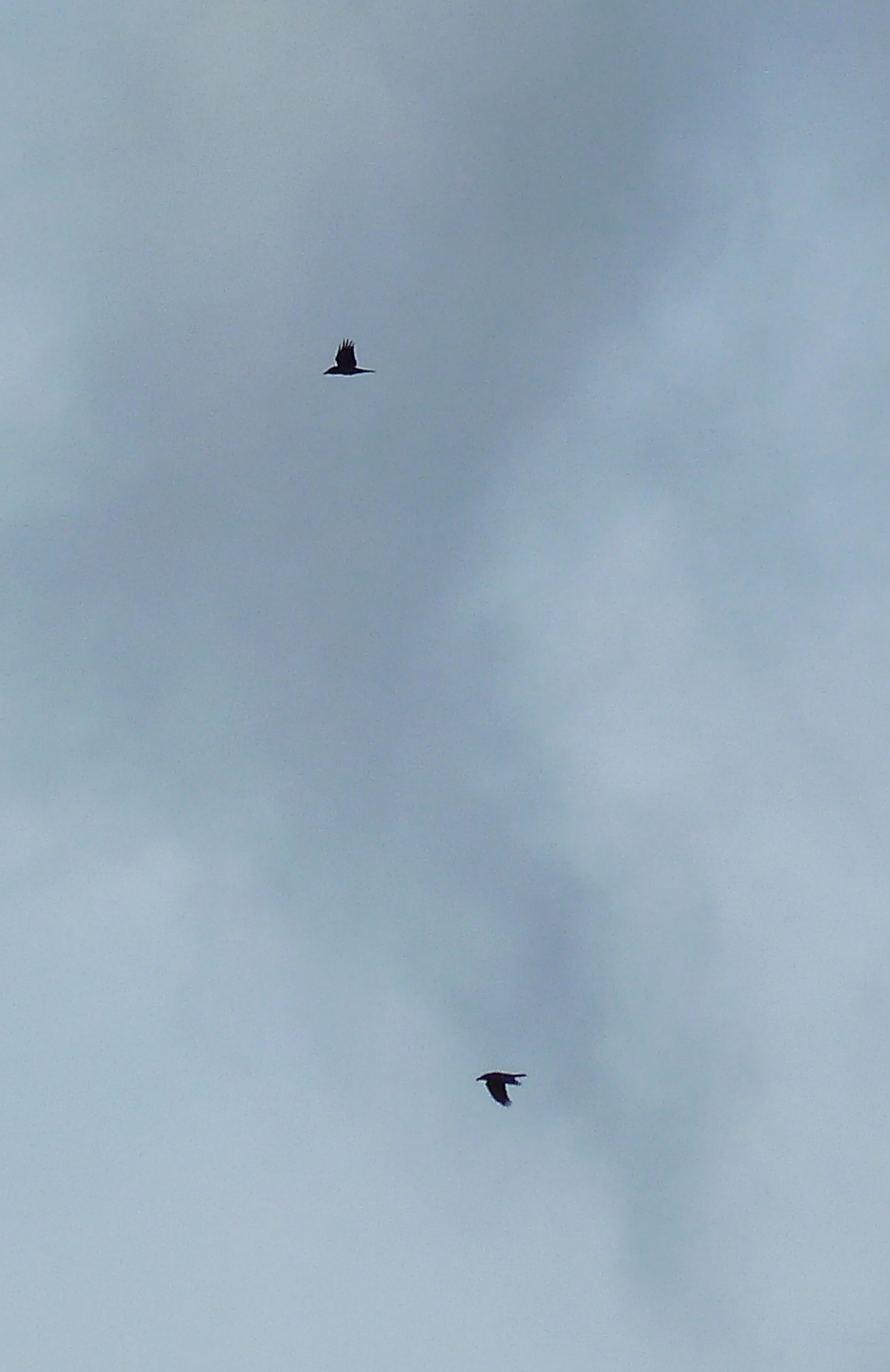 Common Buzzard - 4 - in the air together at 12:30 ; Jackdaw - 134 - flew west at 15:45
