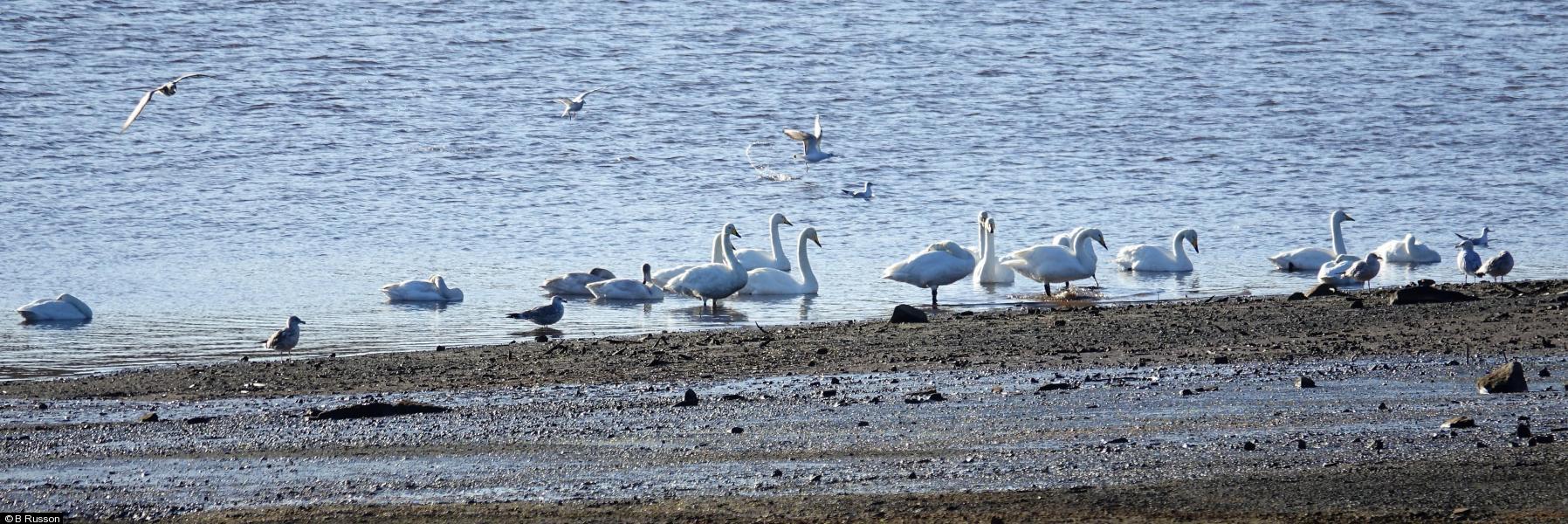 Lapwing - 72 ; Snipe - 8+ - At least 8 feeding in grassy area ; Shoveler - 1 - Female ; Goosander - 4 - redheads at dusk ; Lapwing - 64 - at dusk ; Curlew - 1 - on No. 4 lagoon ; Snipe - 4 ; Lesser Black-backed Gull - 1400 - c. roosted ; Great Black-backed Gull - 1 - ad roosted amongst LBBs ;