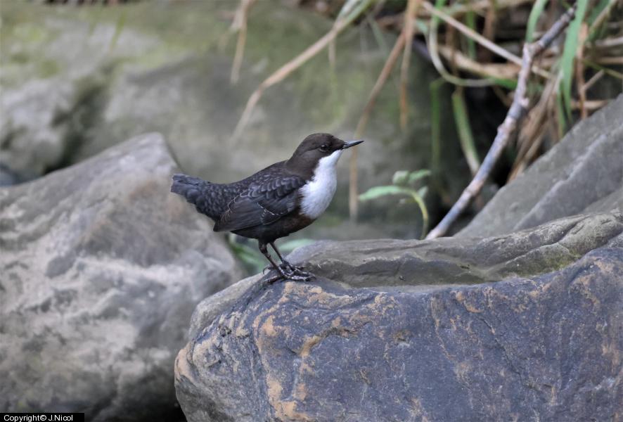 Dipper - 1 - Feeding downstream side of weir. ; Stonechat - 3 - 3 birds south side smaller lake.