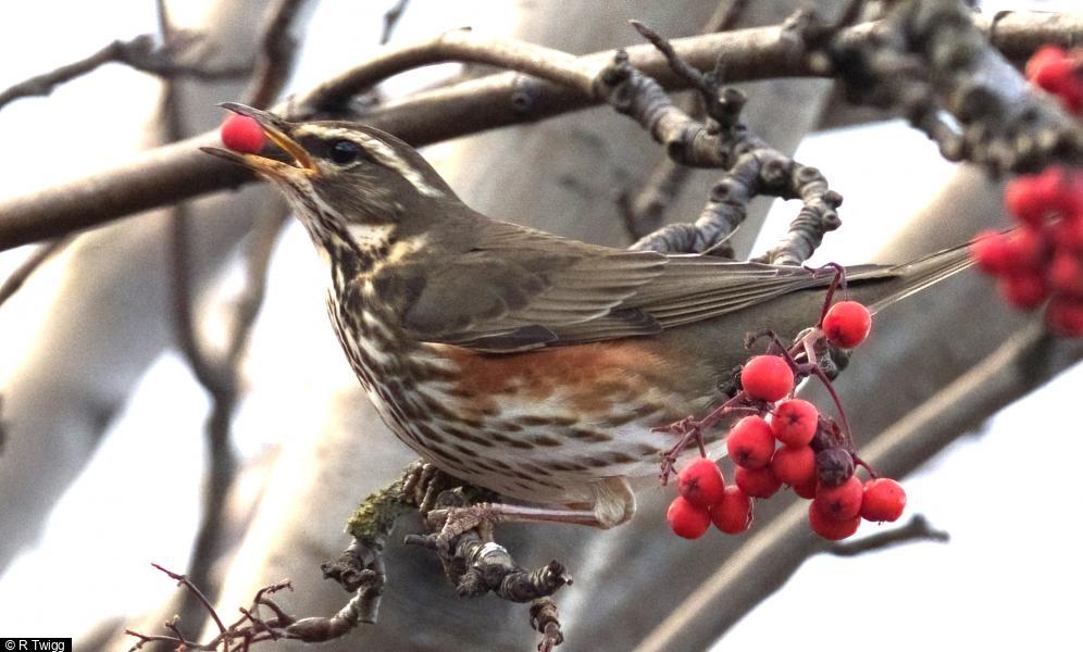 - c50 - Feeding in road side trees. ; Mistle Thrush - 1