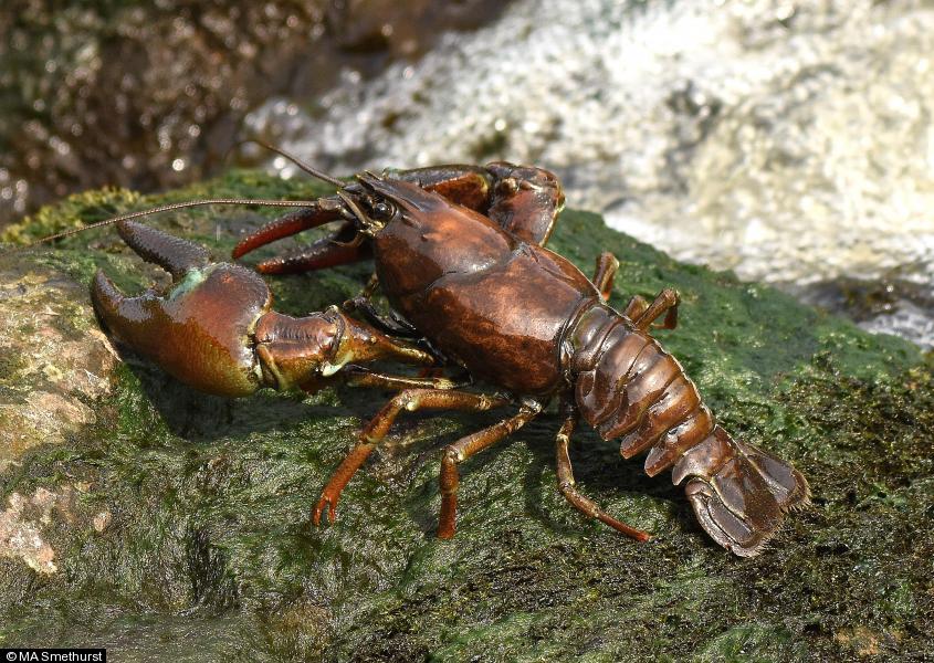 324 - 1 - Signal Crayfish on rock immediately below weir at 15.00 ;