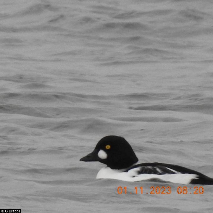 Goldeneye - 1 - Male ; Shoveler - 8 ; Shelduck - 1 ; Lapwing - 35 ; Lesser Black-backed Gull - 550 ; Herring Gull - 1