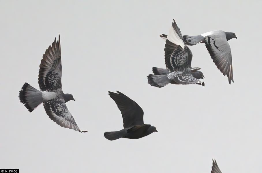 Raven - 5 - Very vocal as they flew over, much calling, and what looked like chasing, possibly between 2 parents and this year's young?