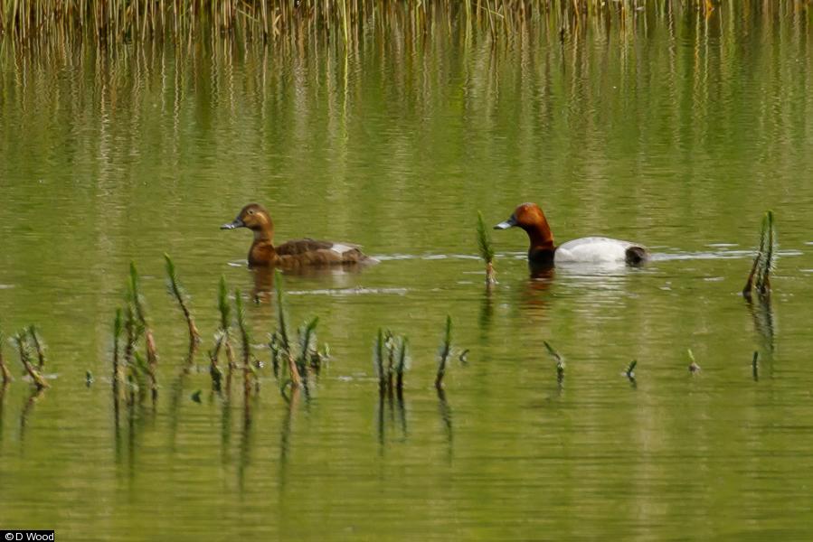 Pochard - 2 - pair on S pool ; Reed Warbler - 7 - including 5 singing males on 3 separate pools (3 on reedbed around main lake) ; Mallard - 1+ - female with 2 chicks on main lake ; Grey Heron - 1 ; Gadwall - 1 - male on lake by Great Bear factory - breeding?