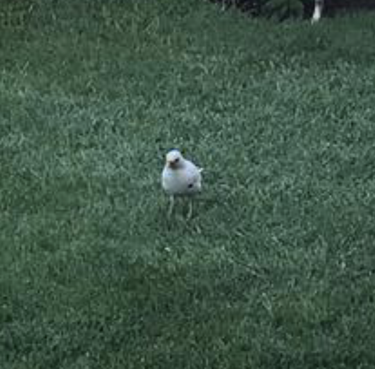 Blackbird - 1 - Totally white Blackbird rear of tanyard nr playing fields, collecting earthworms