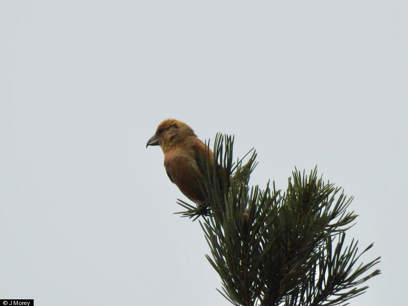 Crossbill - 15+ - Plenty calling in plantation, 7 birds seen well, including two posing and singing males. ; Crossbill - 15+ - Another photo ; Bullfinch - 2 - pair ; Mistle Thrush - 4 - small noisy flock ;