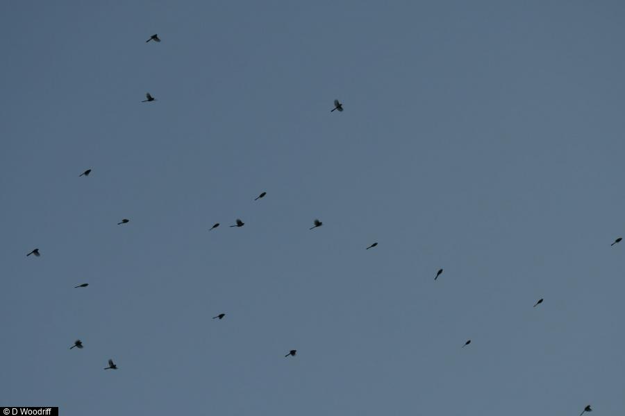 - 1 ; Siskin - 1+ ; Long-tailed Tit - c30 ; Woodpigeon - c400 - South - many stopping to feed ; Meadow Pipit - 2 - South ; Chaffinch - 2 - South ; Pied Wagtail - 5 - SSW